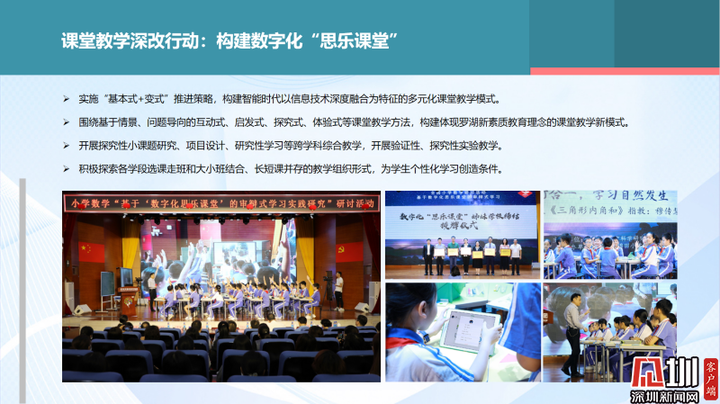 羅湖區(qū)推出的數(shù)字化“思樂課堂”相關(guān)課題,2020年被《中國教師報》認(rèn)定為中國教育課堂改革十大樣本?!八紭氛n堂”充分發(fā)揮數(shù)字技術(shù),提升課堂的邏輯性、趣味性、交互性、有效性,從而有效激發(fā)學(xué)生的學(xué)習(xí)潛能,使得深度學(xué)習(xí)在課堂中真實發(fā)生。目前,這種模式影響力也在不斷擴(kuò)大,走向全國。4月8日,深圳市錦田小學(xué)、布心小學(xué)與來自陜西、江西的學(xué)校締結(jié)了數(shù)字化“思樂課堂”姊妹學(xué)校。近期,第二批數(shù)字化“思樂課堂”的學(xué)校和教師加入這個課改項目。