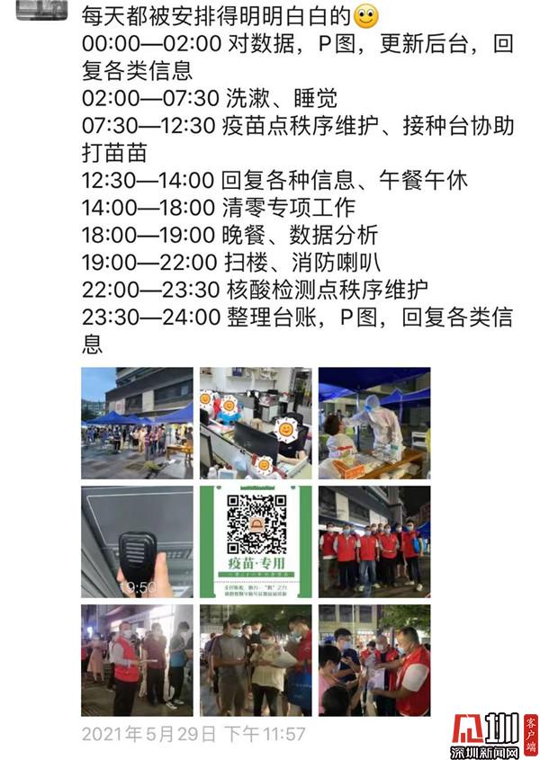 這是這段時間邱蜀鈞的一天的時間安排,白天對疫苗點(diǎn)進(jìn)行秩序維護(hù)、在接種臺協(xié)助打疫苗、整理轄區(qū)清零專項(xiàng)工作等,晚上去居民樓掃樓、進(jìn)行數(shù)據(jù)分析,回去之后整理臺賬,編輯公眾號傳達(dá)最新情況,是名副其實(shí)的全能型時間管理大師。