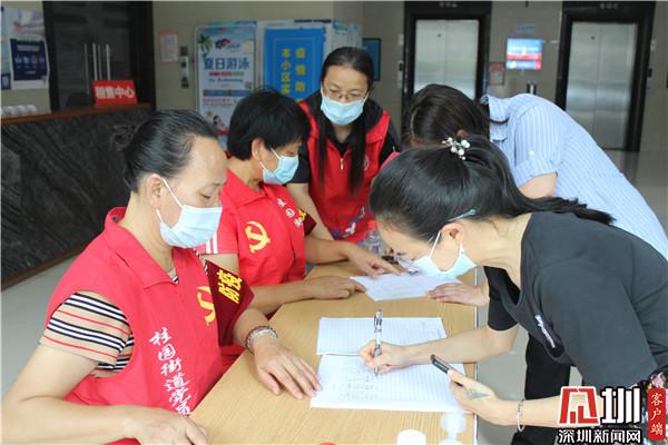 在社區(qū)“宣傳疫苗接種先鋒崗”前,忙碌著黨員的身影。社區(qū)居民林志文,是一名有著21年黨齡的老黨員。今年63歲的她身穿紅馬甲,臂戴“疫情監(jiān)督員”的紅袖章,精神抖擻地站在老圍花園E座出入口,笑容可掬地用本地話問:“靚仔,打疫苗了嗎?這里可以預(yù)約喲。”“靚仔”聽到如此親切的鄉(xiāng)音,停下匆匆的腳步,“沒打呢,現(xiàn)在預(yù)約吧?!迸c林姐是最佳拍檔的老黨員尹小妹,她們都是本地人,平時(shí)除了唱歌跳舞,她們還積極參加社區(qū)活動(dòng),疫情當(dāng)前,她們冒著被感染的風(fēng)險(xiǎn),勇敢站出來(lái),用自己的實(shí)際行動(dòng),詮釋著黨員的模范先鋒帶頭作用。