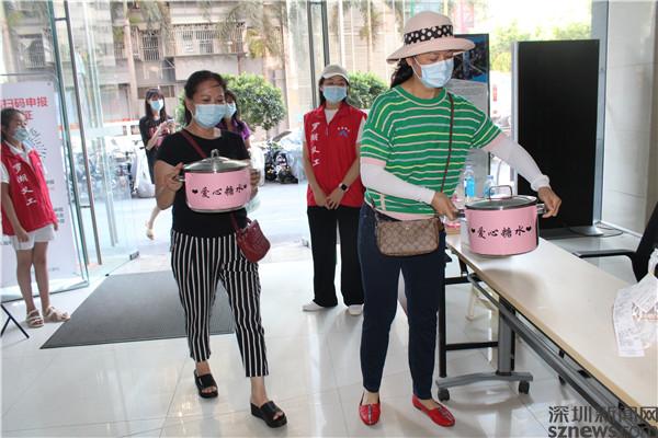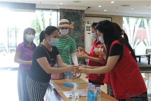 讀特客戶端·深圳新聞網(wǎng)2021年6月7日訊(記者 劉嘉敏 通訊員 楊紀(jì)歐)近日,炎炎烈日下,三位居民推著一輛平板車,車上放著兩個(gè)大鍋,鍋里裝著濃濃的糖水,正朝著老圍花園的出入口走來,她們是羅湖區(qū)桂園街道老圍社區(qū)老年人協(xié)會的會長蔡東風(fēng)和委員賴秀文、陳艷芳,要給守衛(wèi)在老圍花園和名仕閣5個(gè)出入口的社區(qū)工作人員、社工和志愿者們以及保安員送上糖水,以表達(dá)他們對疫情防控的支持和參與抗疫的決心。