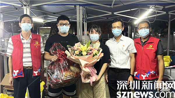東湖街道黨工委、街道總工會被李忠麗夫婦的故事所打動,為夫婦二人送上了鮮花及水果,為他們這種舍小家、為大家的精神點贊,并表達了對醫(yī)護人員崇高的敬意與感謝。