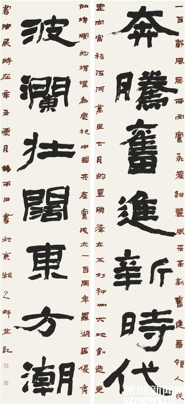 梁宇對(duì)此次展覽表示充分肯定并表示,此次展覽,羅湖區(qū)以書法的形式來慶祝中國共產(chǎn)黨百年華誕,通過書法的形式來謳歌、體現(xiàn)黨的這一百年的光輝歷程。同時(shí),書法家們通過各種書體來體現(xiàn)藝術(shù)家對(duì)黨的濃濃情感,也通過作品呈現(xiàn)出了聽黨話、跟黨走的一種精神面貌。