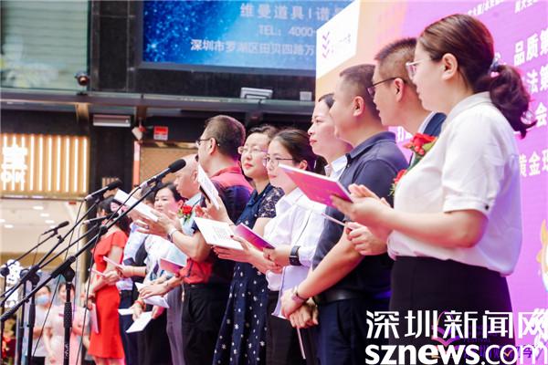隨后,水貝萬山珠寶文化產(chǎn)業(yè)園總經(jīng)理陳曄平、金展珠寶廣場招商運(yùn)營總監(jiān)王琳琳、特力珠寶大廈運(yùn)營總經(jīng)理崔戰(zhàn)紅、水貝金座運(yùn)營中心總監(jiān)趙麗、水貝國際中心運(yùn)營總監(jiān)廖燦榮等交易中心代表,以及周六福珠寶總經(jīng)理謝明育、周大生珠寶行政副總經(jīng)理周洪生、金大福珠寶副總裁丘航等珠寶品牌代表一同上臺(tái)宣誓,表達(dá)展示特色、推廣品牌、促進(jìn)消費(fèi)、助推增長的決心。