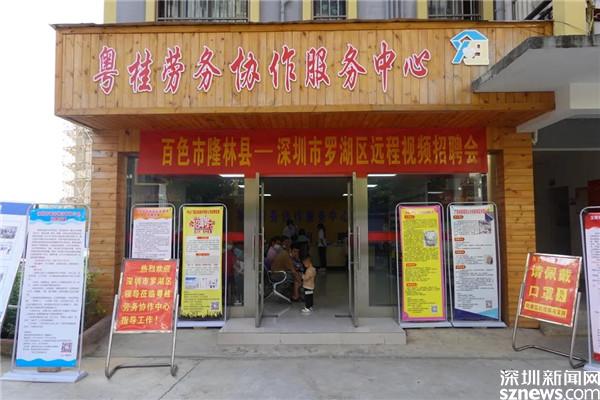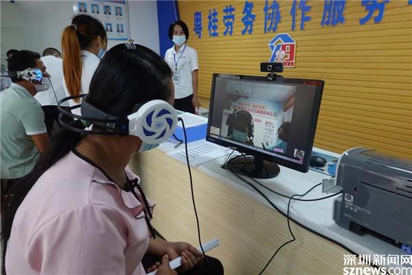 在粵桂勞務(wù)協(xié)作服務(wù)中心,一場兩地遠程視頻招聘會正在舉行,不少百姓拿著心儀的崗位介紹在等候面試。服務(wù)中心前臺放置著四臺電腦,參加面試的人坐在電腦前連接視頻,視頻的另一端,是來自羅湖區(qū)的企業(yè)。這樣的視頻招聘會,定期在服務(wù)中心舉行。