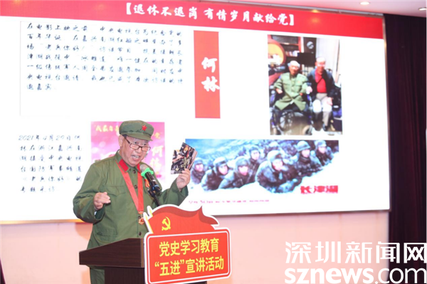 “他是71年前抗美援朝長津湖戰(zhàn)役中‘冰雕連’唯一健在的幸存者周全弟,四肢被凍傷后全部截肢,但他學(xué)會了生活自理,洗漱、穿衣、吃飯、搖著輪椅四處“散步”,甚至用手機(jī)上網(wǎng)看新聞。我們一起參加了中央電視臺在嘉興南湖紅船舉辦的《老兵你好》訪談節(jié)目。”74歲高齡的何林說,他是一名深圳拓荒牛代表、羅湖區(qū)“紅星宣講隊”成員。