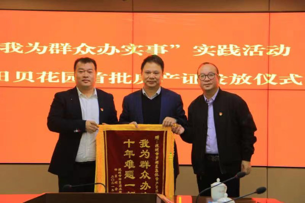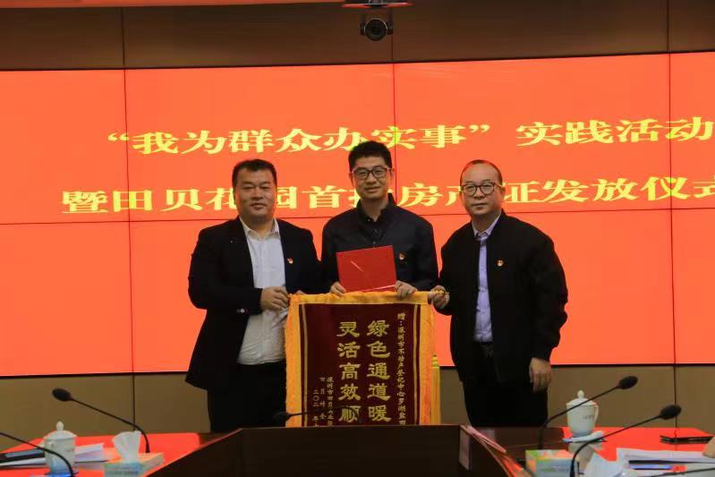 儀式當(dāng)天,5名村民代表從羅湖區(qū)領(lǐng)導(dǎo)的手中接過了房產(chǎn)證,田貝股份合作公司向有關(guān)單位贈(zèng)送錦旗表示感謝。
