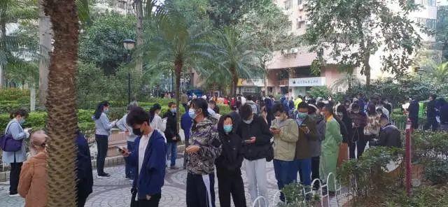 ▲坂田星河銀湖谷樓下也排起長長的核酸檢測隊伍,除了本地居民,人群里還有附近工地的建筑行業(yè)從業(yè)者、外賣小哥等。
