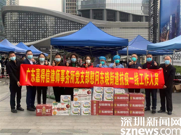 1月10日下午,深圳市人大代表、廣東嘉得信律師事務所主任閔齊雙來到獨樹社區(qū)IBC核酸檢測點慰問抗疫一線工作人員,送上牛奶、功能特飲及水果等慰問品,向奮戰(zhàn)在一線人員致敬和感謝,表示將全力做好一線人員關(guān)愛和后勤保障工作,齊心協(xié)力打贏這場硬仗。
