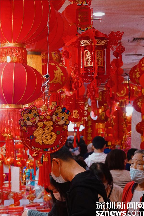 大紅燈籠高高掛起,來(lái)往的市民駐足,在滿目的年味中,挑選心儀的新年裝飾。