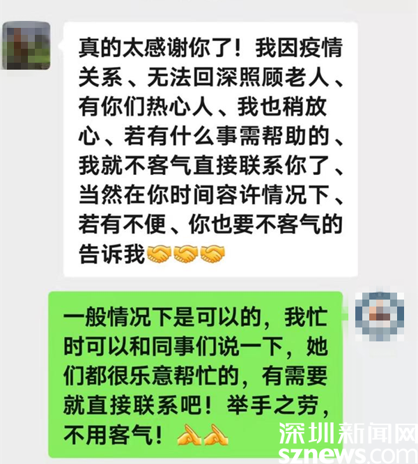 身在香港的溫先生每次從監(jiān)控里看到社區(qū)工作人員來(lái)看望老母親,總會(huì)連聲道謝。劉珍蓮總是說(shuō),“我只是做了我應(yīng)該做的事情。只要社區(qū)居民有需要,老圍社區(qū)的每一位工作人員都能做到。”溫先生在微信上說(shuō):“有社區(qū)照顧老母親,我也稍微放心了?!?/p>