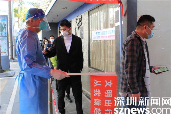 在2月份剛開始做義工的那幾天,深圳遭遇寒潮,他衣衫單薄,舉著粵核酸碼的牌子,手都凍僵了。但當(dāng)社工問他冷不冷,要不要回去添加衣服時(shí),他都說不冷。曾勇林不愿離開崗位,因?yàn)橛辛怂囊龑?dǎo)、維持,有他協(xié)助操作手機(jī),來(lái)檢測(cè)的居民就可以縮短檢測(cè)的時(shí)間,就不用挨冷受凍,其他志愿者就可以得到休息。曾勇林寧愿一個(gè)人凍著冷著,也要讓更多人受益。