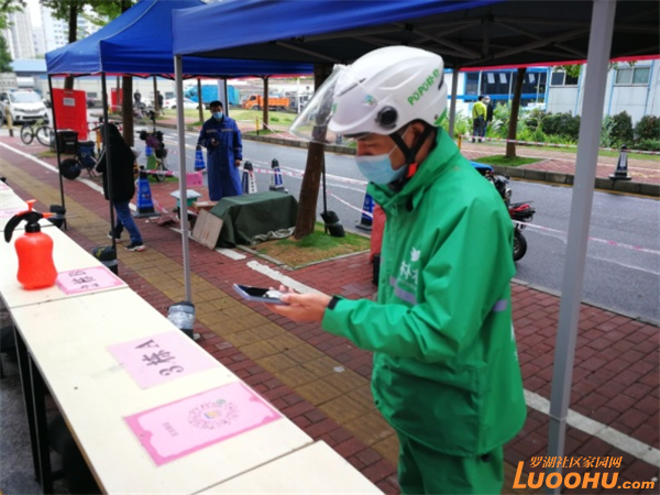 此外,快遞存放區(qū)、外賣(生鮮蔬菜)存放區(qū)貨架上都張貼著樓棟標識,方便快遞分揀與居民取件。此外,快遞及外賣小哥即使不進入小區(qū)也要在臨時存放點嚴格遵守掃場所碼的規(guī)定。在居民在領(lǐng)取快遞或外賣高峰期,需要排隊進行領(lǐng)取,嚴格執(zhí)行間隔距離在一米以上。