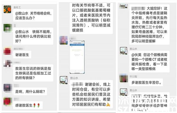 “大家下午好,今天我們講課的主題是《中老年人關(guān)節(jié)炎防治》,希望今天的講座能夠幫助到大家?!卑缴剿匾怃浿屏艘欢魏啙嵉囊曨l,在開課前向居民朋友打招呼。記者了解到,敖山水從事普外科臨床工作20多年,有著豐富的臨床經(jīng)驗(yàn)。開課后,微信群開始熱鬧了起來,敖山水將授課內(nèi)容通過語音發(fā)送,其助手整理成文案同步發(fā)到群上,實(shí)現(xiàn)音頻文字同步轉(zhuǎn)換。