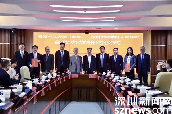 讀特客戶端·深圳新聞網(wǎng)2022年5月20日訊(記者 劉嘉敏)5月20日上午,羅湖區(qū)人民政府與香港中文大學(xué)(深圳)舉行合作辦學(xué)簽約儀式,標(biāo)志著禮文學(xué)校正式落地羅湖。深圳市教育局副局長趙立,羅湖區(qū)委副書記、區(qū)長范德繁,區(qū)領(lǐng)導(dǎo)左金平、馮健與香港中文大學(xué)(深圳)副校長阮健驄、協(xié)理副校長李學(xué)金等共同見證簽約儀式。