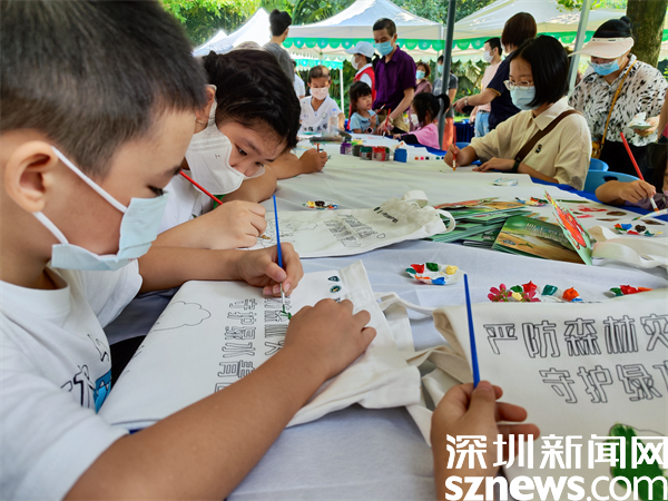 現(xiàn)場互動展區(qū)設(shè)有森林百米畫卷、環(huán)保袋 DIY,通過寓教于樂的方式,培養(yǎng)市民“人與自然”和諧發(fā)展的深層理念。小朋友們可以充分發(fā)揮天馬行空的想象力,在畫布和環(huán)保袋上涂鴉手繪,制作自己的“專屬定制”,完成互動還可以獲得精美的紀(jì)念品一份。