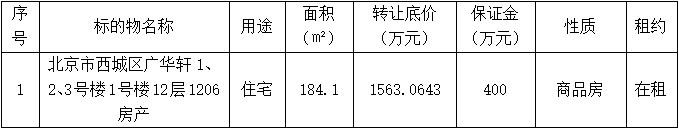深圳報(bào)業(yè)集團(tuán)委托北京產(chǎn)權(quán)交易所對北京市西城區(qū)廣華軒1、2、3號(hào)樓1號(hào)樓12層1206房產(chǎn)進(jìn)行公開掛牌交易,北京產(chǎn)權(quán)交易所現(xiàn)已公開披露以下轉(zhuǎn)讓信息,廣泛征集受讓方。請有意者登錄北京產(chǎn)權(quán)交易所官方網(wǎng)站報(bào)名辦理意向受讓申請。