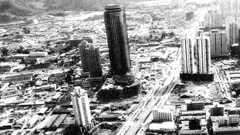 1984年2月,興建中的國貿(mào)大廈