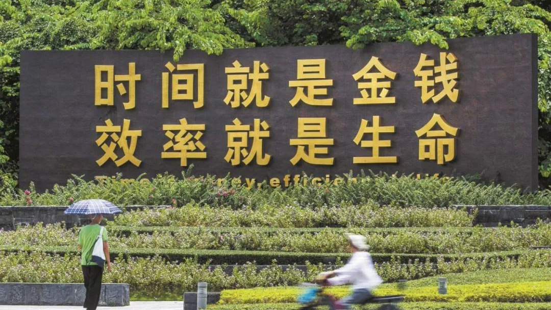 蛇口時間廣場上矗立著“時間就是金錢,效率就是生命”標語牌