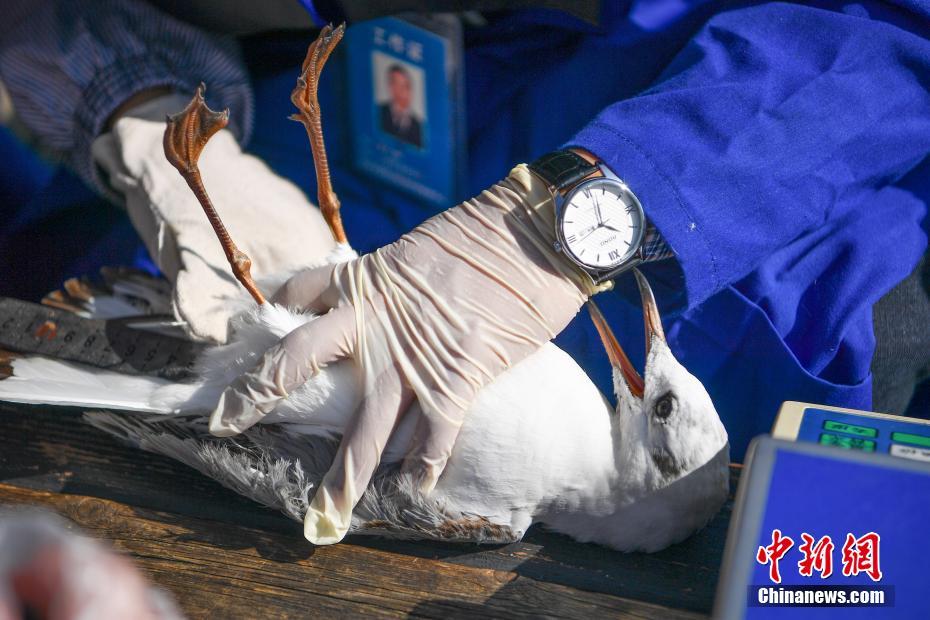 工作人員介紹,環(huán)志的目的在于了解紅嘴鷗種群數量變化情況及身體狀況,更好地為候鳥遷徙研究和野生動物疫源疫病監(jiān)測工作服務。中新社記者劉冉陽 攝
