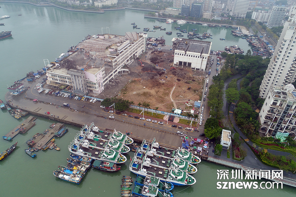 還未看到漁人碼頭,遠(yuǎn)遠(yuǎn)的就能聞到從碼頭飄來的魚腥味。4月16日下午,記者來到蛇口漁人碼頭所在地,遠(yuǎn)遠(yuǎn)望去,許許多多的漁船停泊在漁港內(nèi),天空中下著小雨,然而漁人碼頭那片規(guī)劃拆除的現(xiàn)場,依舊能聽到從里面?zhèn)鱽淼臋C器拆除作業(yè)的聲音。