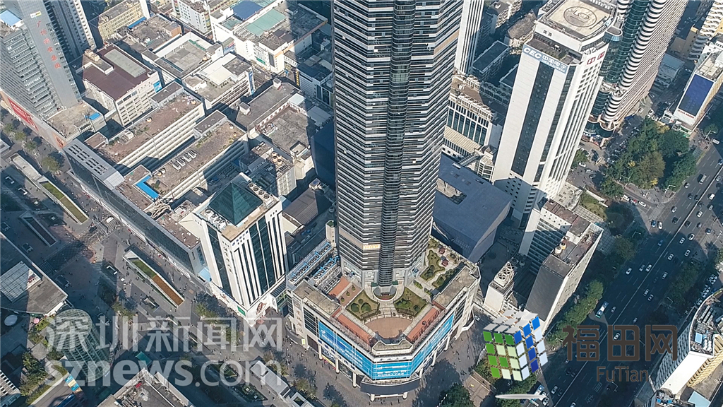 大樓全貌,遠(yuǎn)處是京基100和地王大廈。