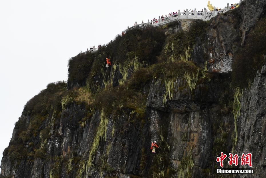 “五一”峨眉山絕壁上的“蜘蛛人”