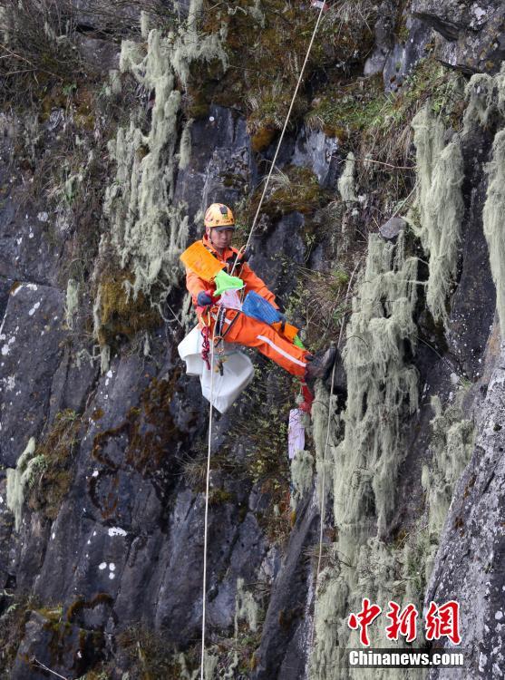 當日,“五一”小長假最后一天,峨眉山景區(qū)的環(huán)衛(wèi)工、山地救援隊的志愿者,在懸崖下200米清理游客丟棄的垃圾。 中新社記者劉忠俊 攝