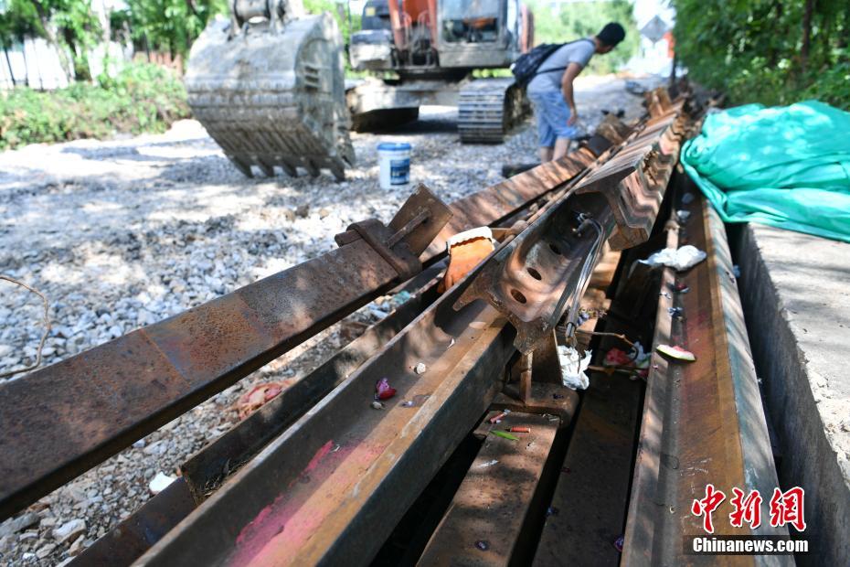 5月8日,穿過(guò)昆明市區(qū)的百年滇越鐵路一段已經(jīng)被拆除。當(dāng)日,昆明地鐵4、5號(hào)線正在進(jìn)行建設(shè),由于施工影響,穿城而過(guò)的一段百年滇越鐵路被拆除,“老鐵路”為“新地鐵”建設(shè)讓步。據(jù)了解,在地鐵建設(shè)完工后,這段滇越鐵路將被重新鋪設(shè),恢復(fù)運(yùn)營(yíng)。中新社記者 任東 攝
