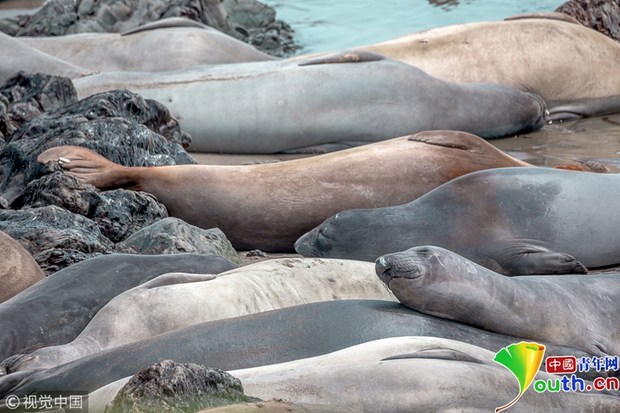 美國加州,阿根廷攝影師Lucio Moujan鏡頭下的圣西蒙海灘,整個海灘被陽光下午睡的象海豹占領(lǐng)。攝影師說道,“那里大概有數(shù)百只象海豹吧,我不知道具體數(shù)目,但是那有一大群。
