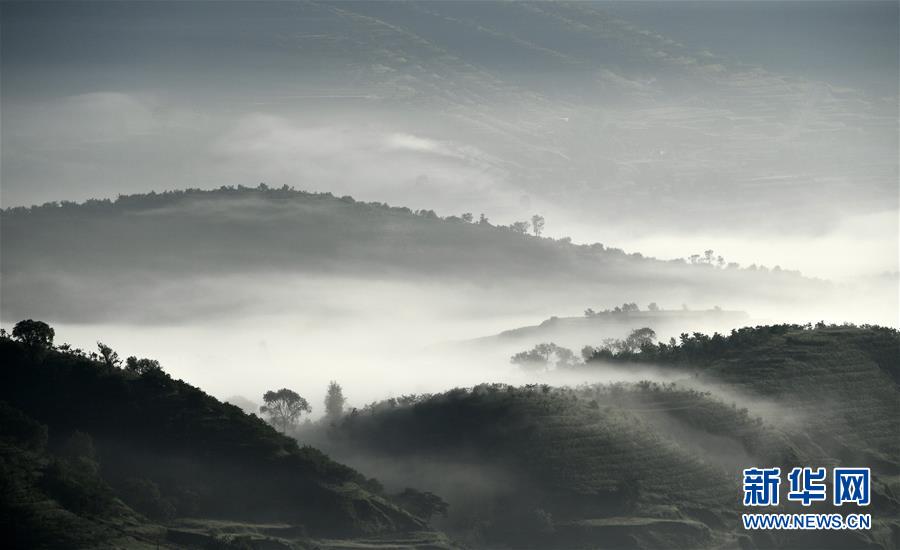 近日,寧夏固原市彭陽縣數(shù)十萬畝旱作梯田在曙光中迎來云海景觀,層疊的梯田間云霧繚繞,宛如仙境。據(jù)了解,彭陽縣自1983年建縣以來,始終堅持生態(tài)立縣的理念,積極推進植樹造林事業(yè),全縣林木保存面積由1983年的27萬畝,增長到目前的203.87萬畝,森林覆蓋率達到27.5%。