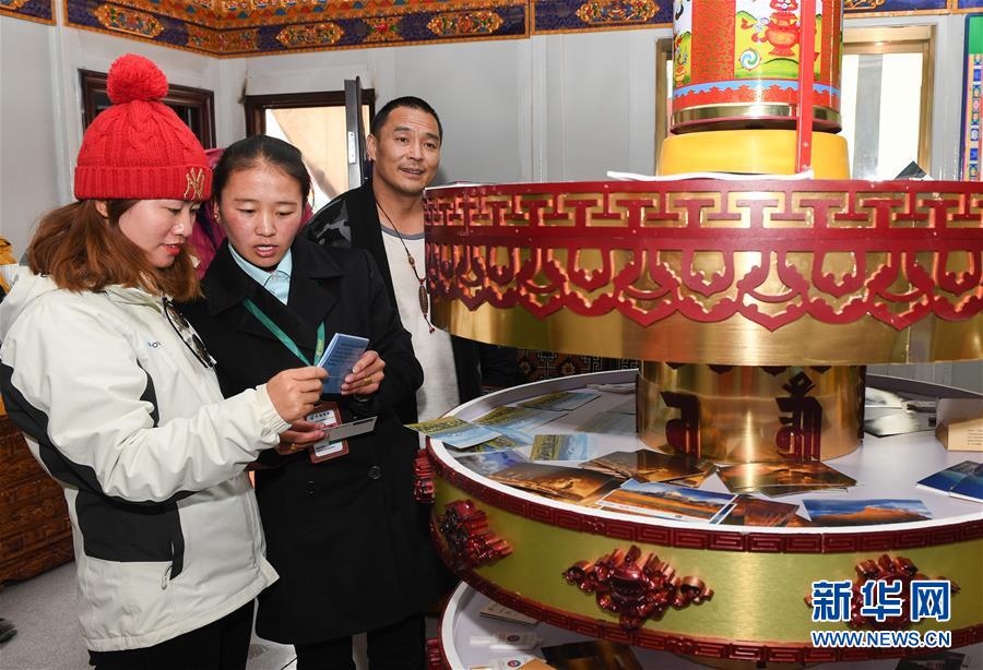 7月24日,天上西藏郵局營業(yè)員措姆在為游客提供服務(wù)。