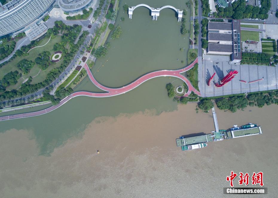 7月10日,航拍長江與南京秦淮河交匯處,江水與河水“涇渭分明”。當(dāng)日,江蘇水利廳發(fā)布的水情信息顯示,長江南京段水位已降至警戒線以下。中新社記者泱波 攝