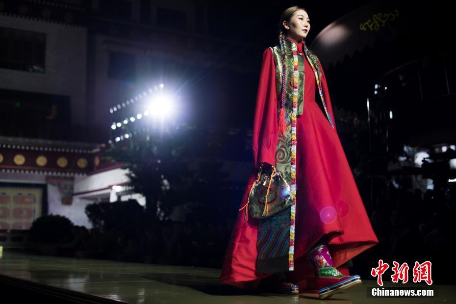 8月12日晚,由西藏職業(yè)技術(shù)學(xué)院與北京服裝學(xué)院共同打造的“凈美雪頓·美好生活”西藏民族服裝與服飾展演活動在拉薩舉行?,F(xiàn)場通過傳統(tǒng)篇、現(xiàn)代篇與未來篇三個(gè)篇章,展演了藏族傳統(tǒng)服裝26套,設(shè)計(jì)創(chuàng)新服裝58套,共計(jì)84套服裝。圖為模特展示現(xiàn)代設(shè)計(jì)的創(chuàng)新藏族服飾。中新社記者何蓬磊 攝