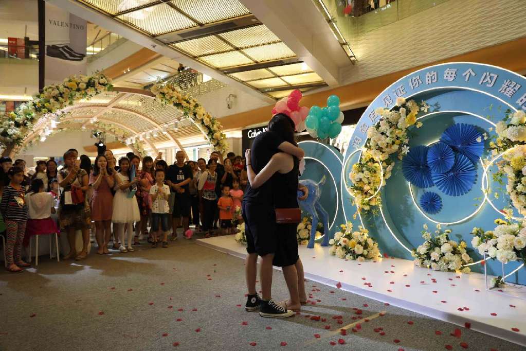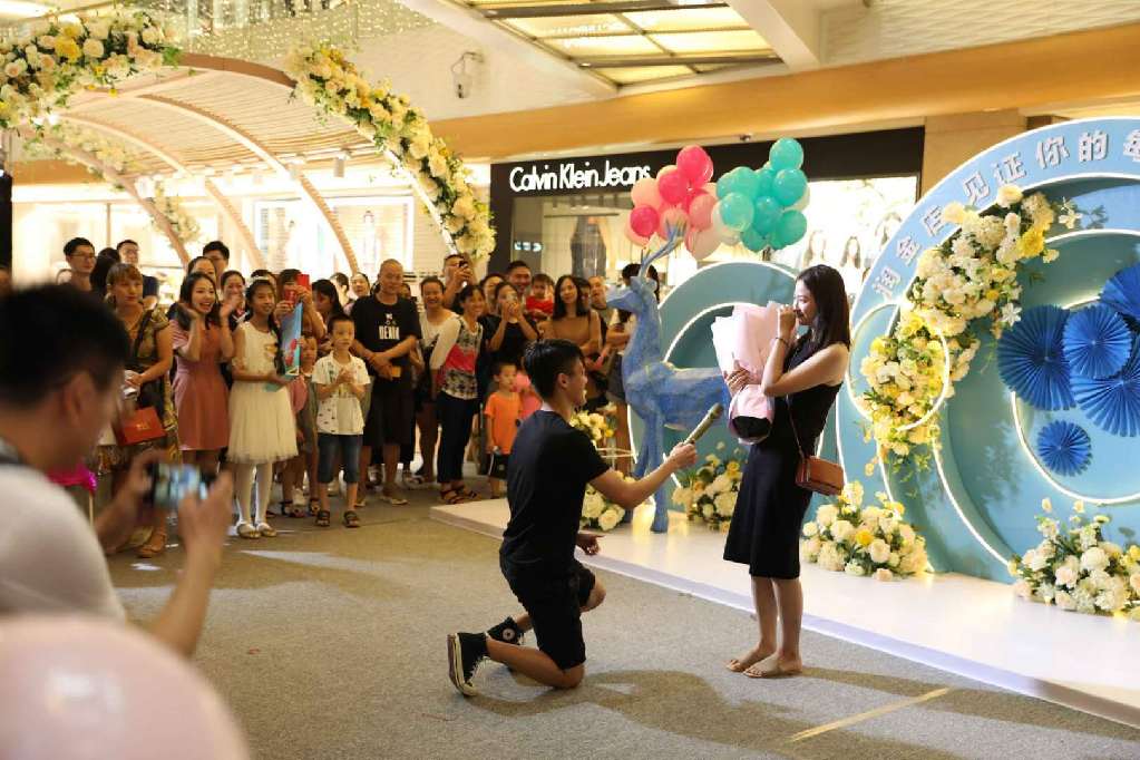 開幕式當天,潤金店工作人員還配合市民楊先生上演了一場浪漫的“求婚大作戰(zhàn)”。原來,數(shù)日前,楊先生到潤金店表示要買一枚與眾不同的戒指向女友求婚。在銷售顧問的建議下,楊先生選購了一枚藍寶石戒指作為求婚信物。得知楊先生的心意后,潤金店品牌策劃部決定與楊先一起在七夕當天完成這場浪漫的“求婚大作戰(zhàn)”。當天,楊先生帶著毫不知情的女友來到潤金店“炫出色彩 耀你不凡”VIP品鑒會現(xiàn)場。正當女友全神貫注欣賞小提琴、拉丁舞等開幕式表演節(jié)目時,楊先生從兜里掏出事先準備好的藍寶石戒指,單膝跪地向一臉茫然的女友喊:“嫁給我吧。”此時,開幕式現(xiàn)場背景音樂“配合”地換成了甜蜜的《今天你要嫁給我》。感動得熱淚盈眶的女友在圍觀市民的歡呼中,拉起了楊先生,并答應了他的求婚。圍觀市民表示“七夕不過是路過,卻不料狠狠地吃了一把狗糧?!?/p>