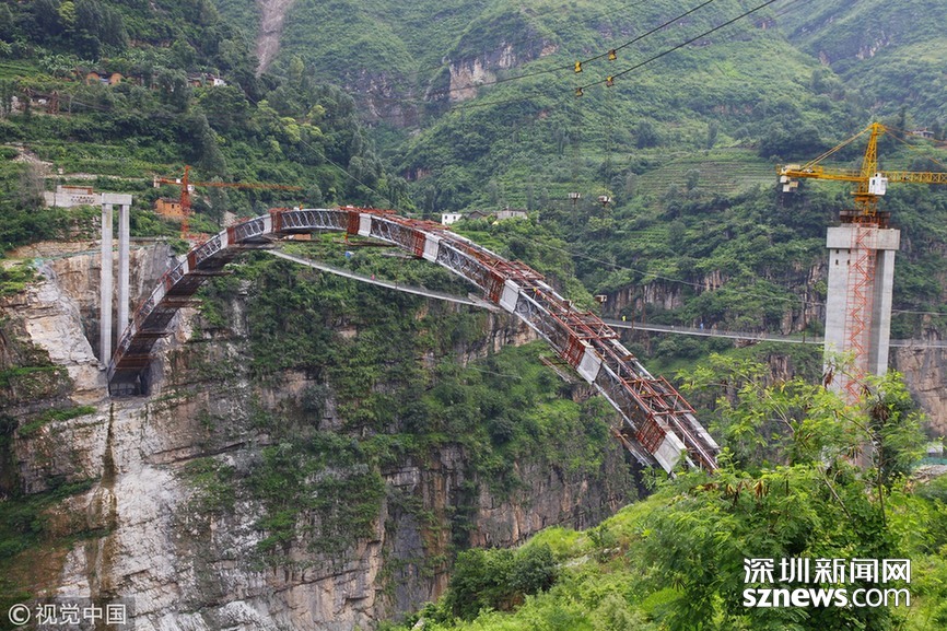 ???? 2018年5月30日,云南昭通,鸚哥大橋完成最后一段35米引橋現(xiàn)澆箱梁作業(yè),標志著“鸚哥溜索改橋”主體工程完工,進入最后階段的橋面鋪裝和防護欄施工,預(yù)計6月底建成通車。