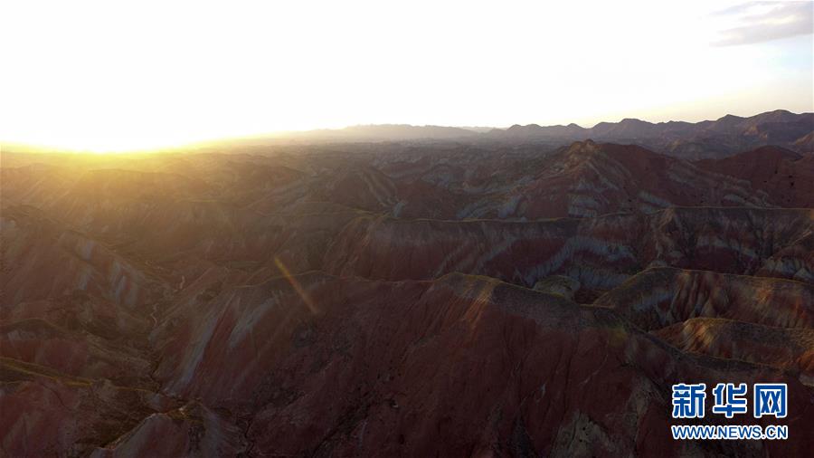 這是7月15日拍攝的夕陽下的蘭州樹屏丹霞地貌。蘭州樹屏丹霞國家地質(zhì)公園位于甘肅省蘭州市永登縣咸水河流域及其毗鄰地區(qū),分布在蘭州市所屬的永登縣、皋蘭縣、西固區(qū)、安寧區(qū),主體位于永登縣樹屏鎮(zhèn)、苦水鎮(zhèn)和西固區(qū)河口鎮(zhèn)。其主體地質(zhì)遺跡為丹霞和彩色丘陵,登高遠眺,綿延起伏,絢爛瑰麗,如同大自然創(chuàng)作的壯美油畫。新華社記者陳曄華 攝