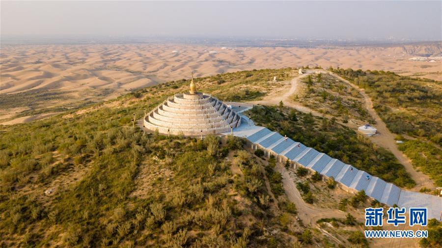 8月22日拍攝的中衛(wèi)市沙漠光伏產(chǎn)業(yè)園。 寧夏中衛(wèi)市位于騰格里沙漠南緣,歷史上曾長期被風(fēng)沙困擾,自然環(huán)境較惡劣。寧夏回族自治區(qū)成立后,中衛(wèi)市逐步實(shí)施草方格固沙、灌木林、喬木林防沙等生態(tài)治沙措施,取得良好效果。近年來,當(dāng)?shù)卦谏鷳B(tài)治沙的基礎(chǔ)上,積極“用沙”,通過在沙地上建設(shè)光伏電站,發(fā)展畜牧業(yè)、葡萄種植業(yè),并建設(shè)沙坡頭旅游景區(qū)等手段,充分改造、利用沙地,取得良好社會(huì)效益和經(jīng)濟(jì)效益。 新華社記者 劉軍喜 攝