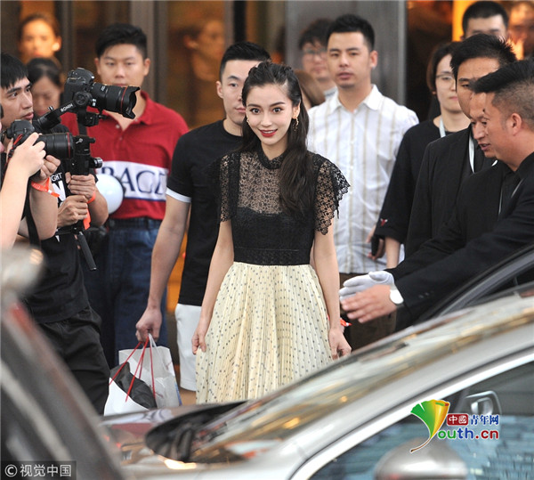 2018年9月6日,上海,Angelababy現(xiàn)身某酒店,她身穿黑色蕾絲薄紗裙小秀性感,走路帶風仙氣十足。