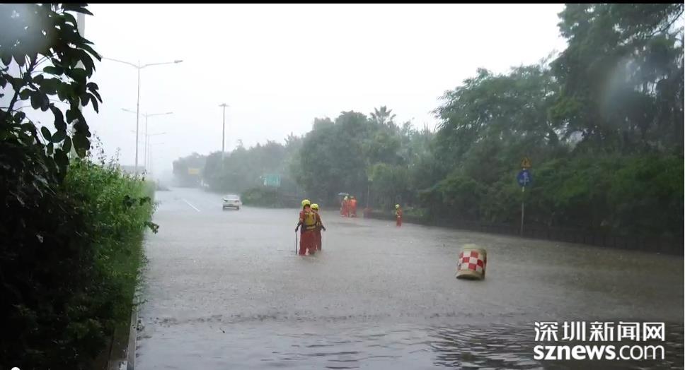 福田區(qū)位于北環(huán)皇崗立交,深圳市水務(wù)集團(tuán)福田分公司梅林所防洪排澇人員,趁風(fēng)勢(shì)雨小,打開(kāi)雨水箅子排積水。
