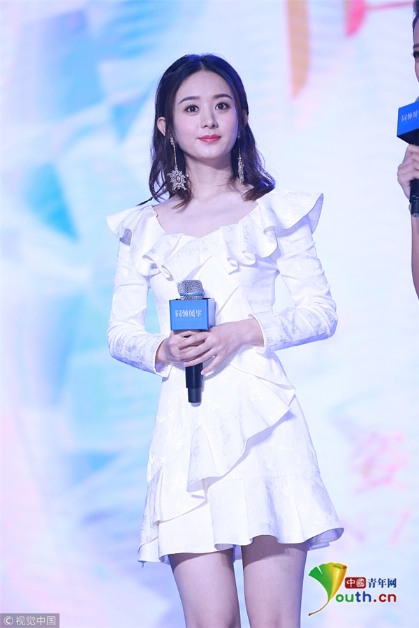 趙麗穎荷葉邊連衣裙亮相 甜美迷人