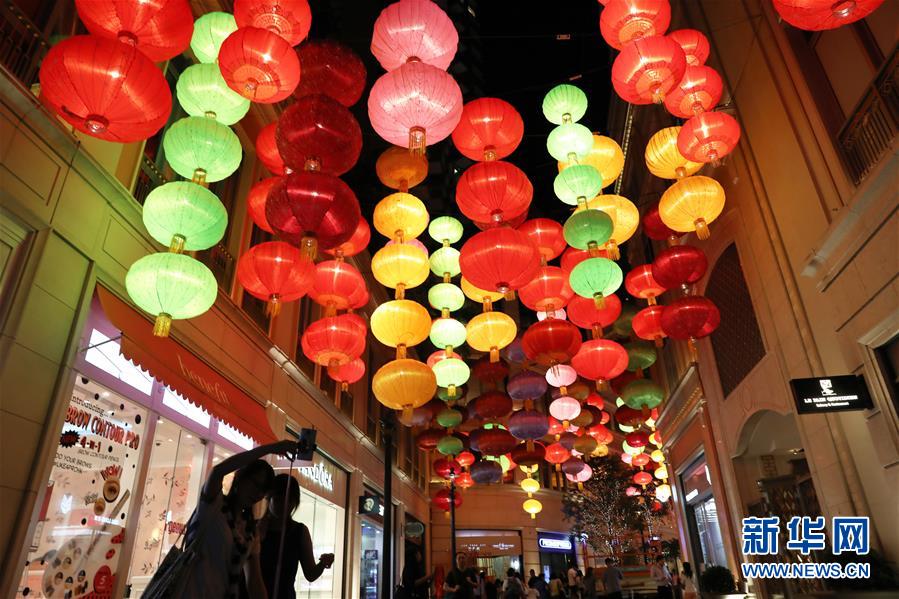 9月21日,彩色燈籠裝扮香港利東街夜景。中秋節(jié)臨近,香港喜慶氣氛日濃。新華社記者吳曉初攝