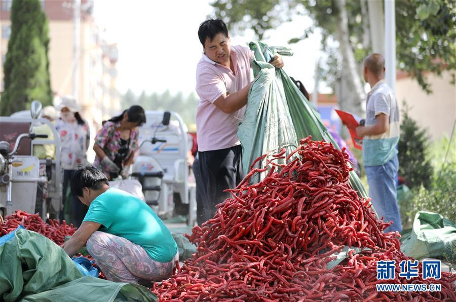 9月16日,阜城縣王集鄉(xiāng)南張莊村農(nóng)民在整理收獲的辣椒。近年來,河北省阜城縣王集鄉(xiāng)在推進產(chǎn)業(yè)富民過程中,積極引導農(nóng)民調(diào)整農(nóng)業(yè)產(chǎn)業(yè)結(jié)構(gòu),按照品種特色化、種植規(guī)?;?、產(chǎn)銷一體化的“公司+基地+農(nóng)戶”的經(jīng)營模式,鼓勵農(nóng)民發(fā)展特色辣椒種植,推行“訂單種植”模式,開辟出了一條農(nóng)民創(chuàng)收新路徑。目前,阜城縣王集鄉(xiāng)辣椒種植面積3100余畝,每畝年收益2500元以上,帶動當?shù)剞r(nóng)民實現(xiàn)增收。新華社記者朱旭東攝