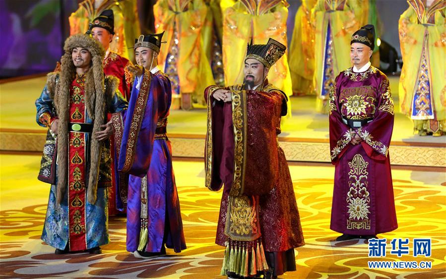 演員在表演《夢(mèng)長(zhǎng)安——大唐迎賓盛禮》(9月23日攝)。新華社記者 梁愛平 攝