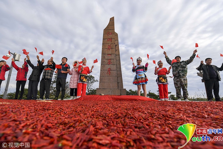 浙江龍泉山喜獲豐收 8噸辣椒拼巨型國旗