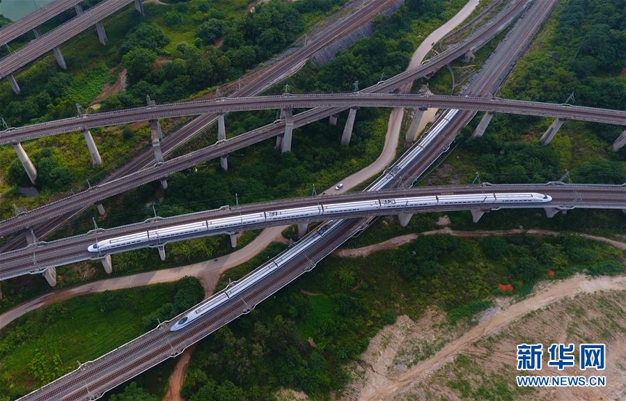 一列動(dòng)車在南寧市區(qū)行駛(9月4日無(wú)人機(jī)拍攝)。 廣西壯族自治區(qū)成立60年來(lái),鐵路建設(shè)發(fā)生翻天覆地的變化。來(lái)自中國(guó)鐵路南寧局集團(tuán)有限公司的數(shù)據(jù)顯示,1958年廣西鐵路總里程為1346.3公里,如今廣西鐵路總里程達(dá)5191公里。廣西與周邊相鄰省份間實(shí)現(xiàn)動(dòng)車“公交化”開行。此外,北部灣港—重慶班列、東盟海產(chǎn)品冷鏈班列、“百色一號(hào)”果蔬專列等的開通和運(yùn)營(yíng),強(qiáng)化了鐵路供給的針對(duì)性和有效性。鐵路成為助推廣西經(jīng)濟(jì)社會(huì)快速發(fā)展的“大動(dòng)脈”。 新華社記者陸波岸攝