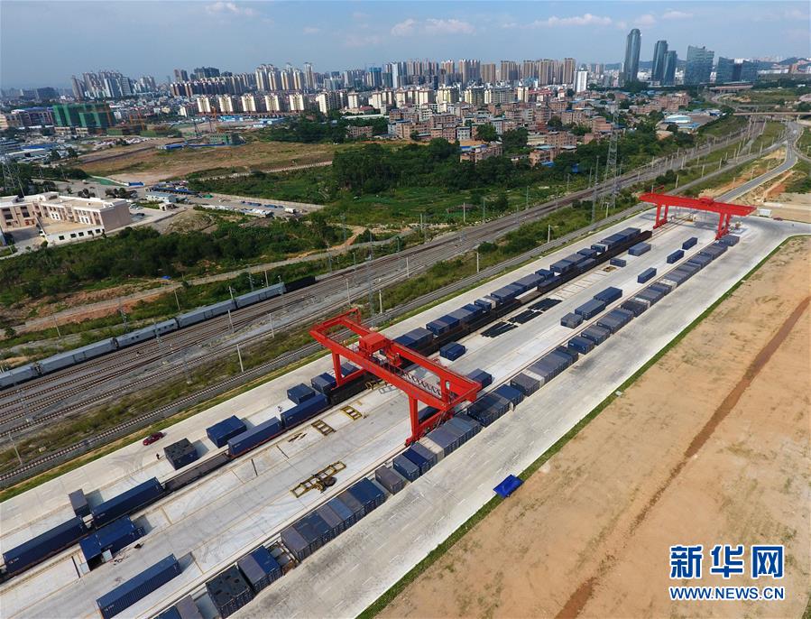 這是正在作業(yè)的南寧鐵路物流中心(5月23日無(wú)人機(jī)拍攝)。 廣西壯族自治區(qū)成立60年來(lái),鐵路建設(shè)發(fā)生翻天覆地的變化。來(lái)自中國(guó)鐵路南寧局集團(tuán)有限公司的數(shù)據(jù)顯示,1958年廣西鐵路總里程為1346.3公里,如今廣西鐵路總里程達(dá)5191公里。廣西與周邊相鄰省份間實(shí)現(xiàn)動(dòng)車“公交化”開行。此外,北部灣港—重慶班列、東盟海產(chǎn)品冷鏈班列、“百色一號(hào)”果蔬專列等的開通和運(yùn)營(yíng),強(qiáng)化了鐵路供給的針對(duì)性和有效性。鐵路成為助推廣西經(jīng)濟(jì)社會(huì)快速發(fā)展的“大動(dòng)脈”。 新華社記者陸波岸攝