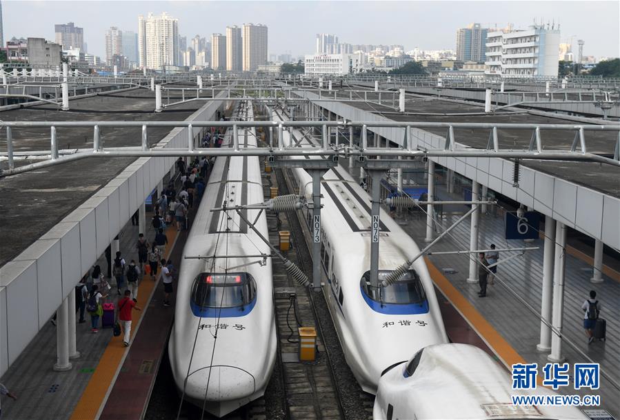 在廣西南寧東站,旅客在候車準(zhǔn)備出行(9月4日攝)。 廣西壯族自治區(qū)成立60年來(lái),鐵路建設(shè)發(fā)生翻天覆地的變化。來(lái)自中國(guó)鐵路南寧局集團(tuán)有限公司的數(shù)據(jù)顯示,1958年廣西鐵路總里程為1346.3公里,如今廣西鐵路總里程達(dá)5191公里。廣西與周邊相鄰省份間實(shí)現(xiàn)動(dòng)車“公交化”開行。此外,北部灣港—重慶班列、東盟海產(chǎn)品冷鏈班列、“百色一號(hào)”果蔬專列等的開通和運(yùn)營(yíng),強(qiáng)化了鐵路供給的針對(duì)性和有效性。鐵路成為助推廣西經(jīng)濟(jì)社會(huì)快速發(fā)展的“大動(dòng)脈”。 新華社記者陸波岸攝