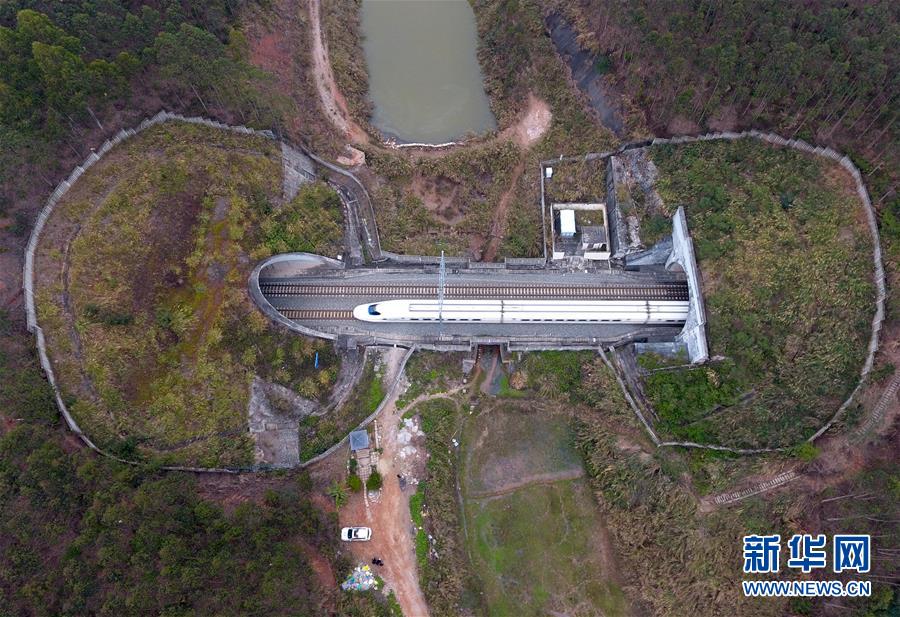 一列動(dòng)車穿越南寧郊區(qū)一處隧道(2月11日無(wú)人機(jī)拍攝)。 廣西壯族自治區(qū)成立60年來(lái),鐵路建設(shè)發(fā)生翻天覆地的變化。來(lái)自中國(guó)鐵路南寧局集團(tuán)有限公司的數(shù)據(jù)顯示,1958年廣西鐵路總里程為1346.3公里,如今廣西鐵路總里程達(dá)5191公里。廣西與周邊相鄰省份間實(shí)現(xiàn)動(dòng)車“公交化”開行。此外,北部灣港—重慶班列、東盟海產(chǎn)品冷鏈班列、“百色一號(hào)”果蔬專列等的開通和運(yùn)營(yíng),強(qiáng)化了鐵路供給的針對(duì)性和有效性。鐵路成為助推廣西經(jīng)濟(jì)社會(huì)快速發(fā)展的“大動(dòng)脈”。 新華社記者陸波岸攝