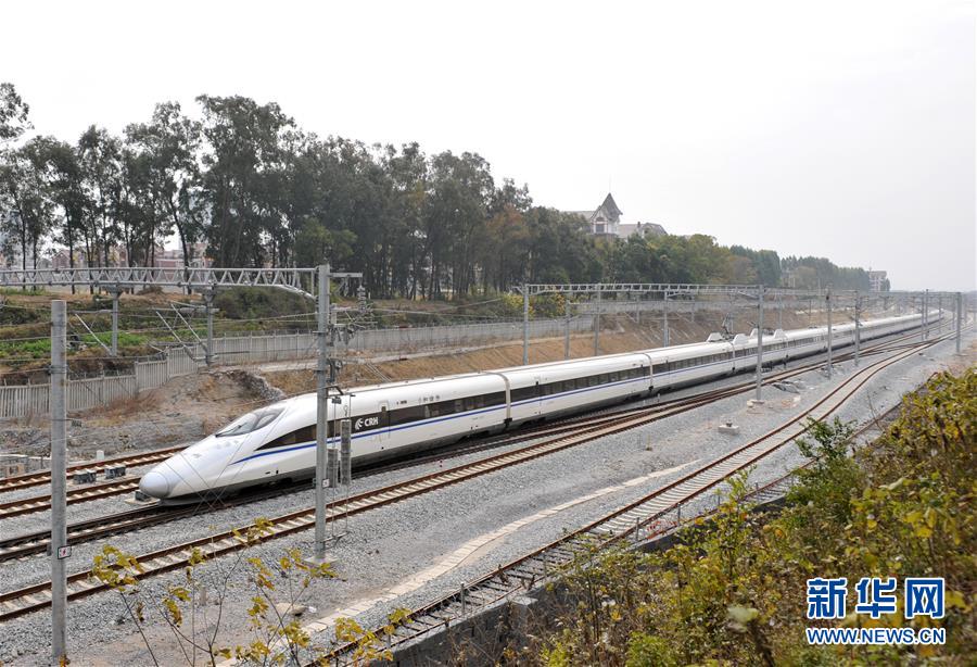 廣西桂林至北京高鐵列車在桂林市靈川縣境內(nèi)行駛(2013年12月28日攝)。 廣西壯族自治區(qū)成立60年來(lái),鐵路建設(shè)發(fā)生翻天覆地的變化。來(lái)自中國(guó)鐵路南寧局集團(tuán)有限公司的數(shù)據(jù)顯示,1958年廣西鐵路總里程為1346.3公里,如今廣西鐵路總里程達(dá)5191公里。廣西與周邊相鄰省份間實(shí)現(xiàn)動(dòng)車“公交化”開行。此外,北部灣港—重慶班列、東盟海產(chǎn)品冷鏈班列、“百色一號(hào)”果蔬專列等的開通和運(yùn)營(yíng),強(qiáng)化了鐵路供給的針對(duì)性和有效性。鐵路成為助推廣西經(jīng)濟(jì)社會(huì)快速發(fā)展的“大動(dòng)脈”。 新華社記者陸波岸攝