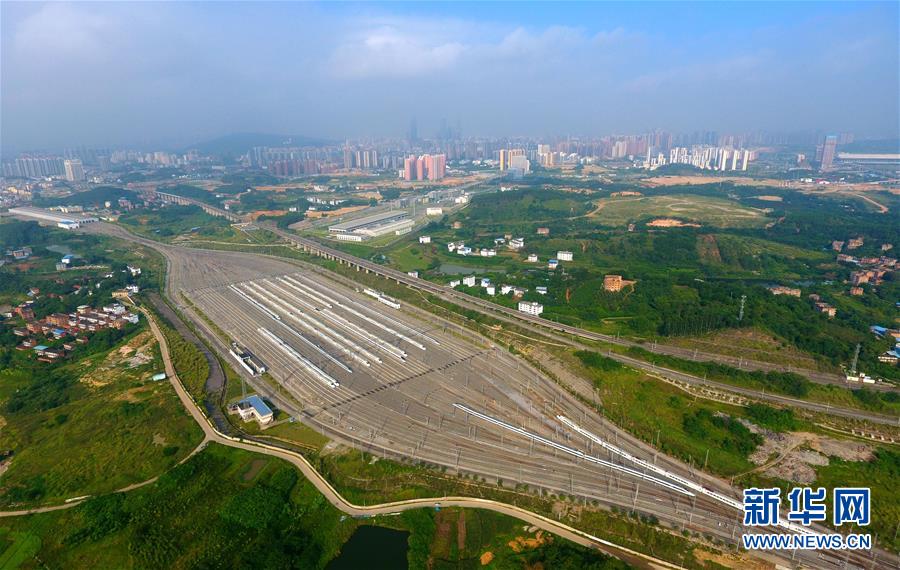這是廣西南寧動(dòng)車所內(nèi)準(zhǔn)備發(fā)往各地的動(dòng)車組列車(7月1日無(wú)人機(jī)拍攝)。 廣西壯族自治區(qū)成立60年來(lái),鐵路建設(shè)發(fā)生翻天覆地的變化。來(lái)自中國(guó)鐵路南寧局集團(tuán)有限公司的數(shù)據(jù)顯示,1958年廣西鐵路總里程為1346.3公里,如今廣西鐵路總里程達(dá)5191公里。廣西與周邊相鄰省份間實(shí)現(xiàn)動(dòng)車“公交化”開行。此外,北部灣港—重慶班列、東盟海產(chǎn)品冷鏈班列、“百色一號(hào)”果蔬專列等的開通和運(yùn)營(yíng),強(qiáng)化了鐵路供給的針對(duì)性和有效性。鐵路成為助推廣西經(jīng)濟(jì)社會(huì)快速發(fā)展的“大動(dòng)脈”。 新華社記者黃孝邦攝